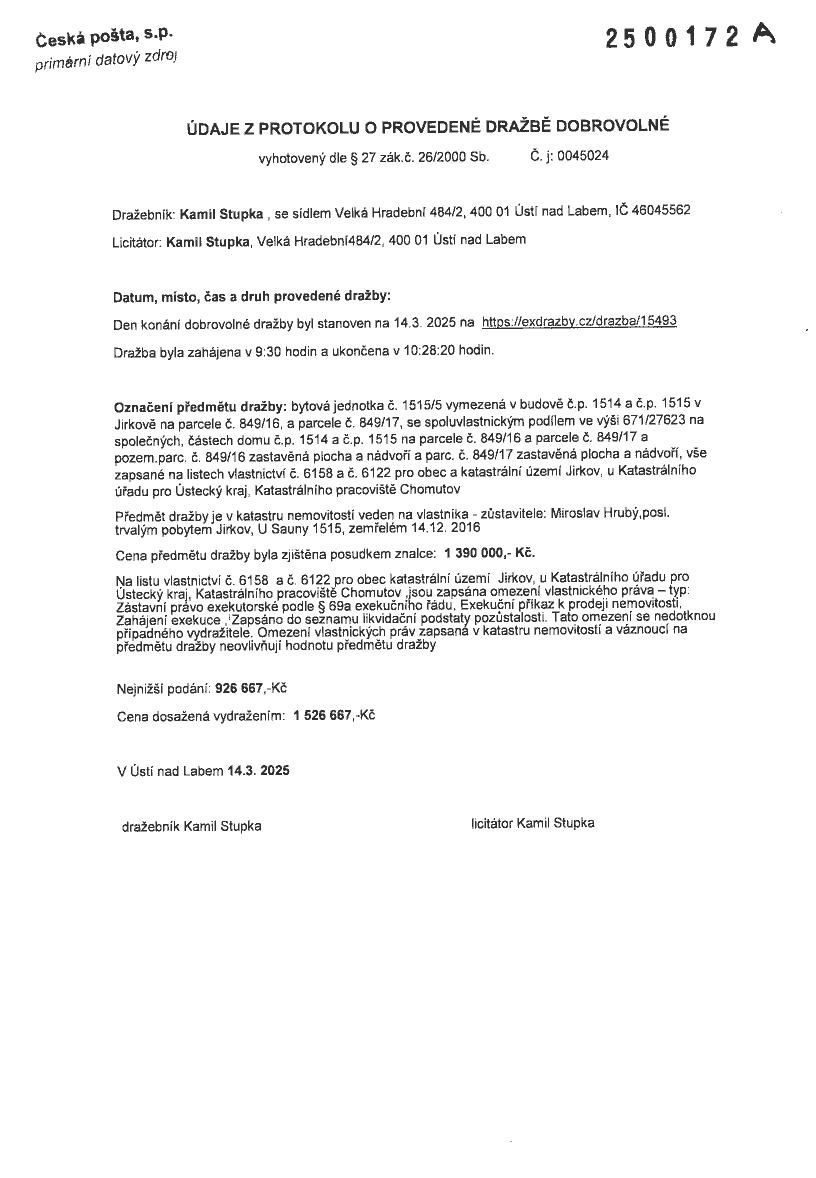 www.centralniadresa.cz – 07.12.2025 19:23 – announcement number 10969336DP01
