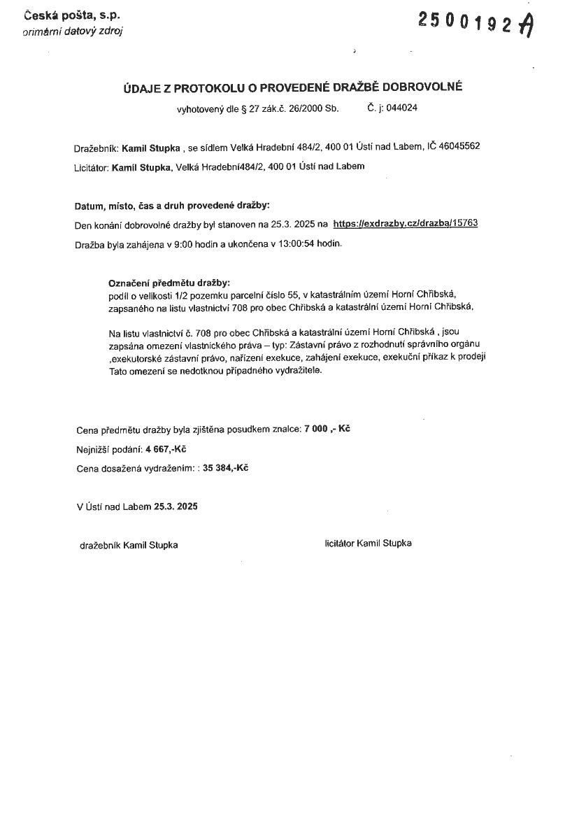 www.centralniadresa.cz – 07.12.2025 19:21 – announcement number 10969350DP01