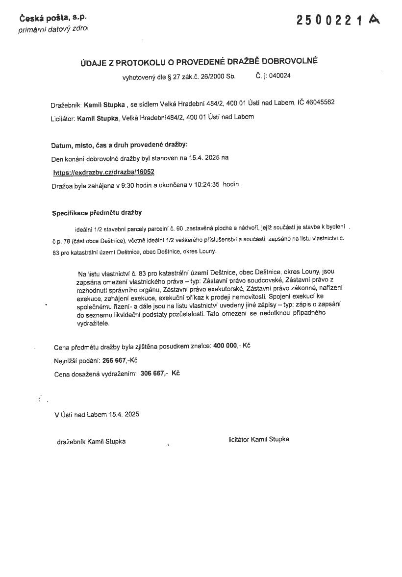 www.centralniadresa.cz – 07.12.2025 19:21 – announcement number 10969365DP01