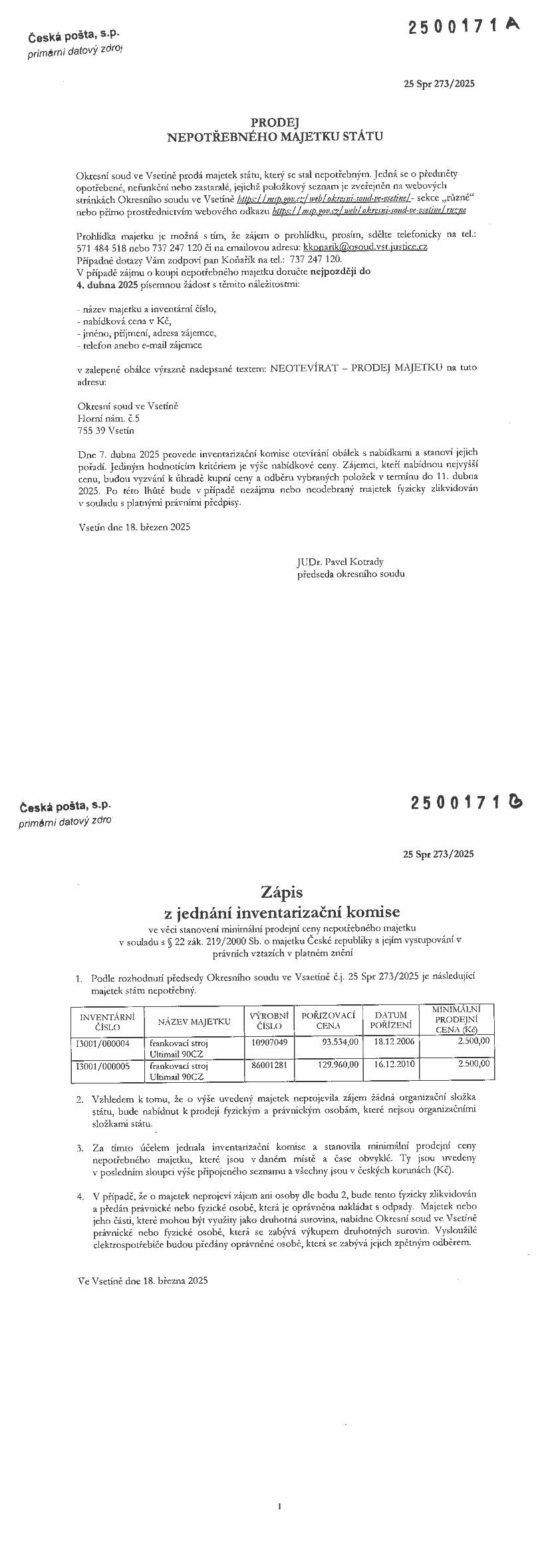 Uveřejněná data na centrální adrese jsou určena pouze pro účely vlastní realizace veřejných dražeb, veřejných nabídek a ostatních veřejných zakázek dle platné legislativy.
