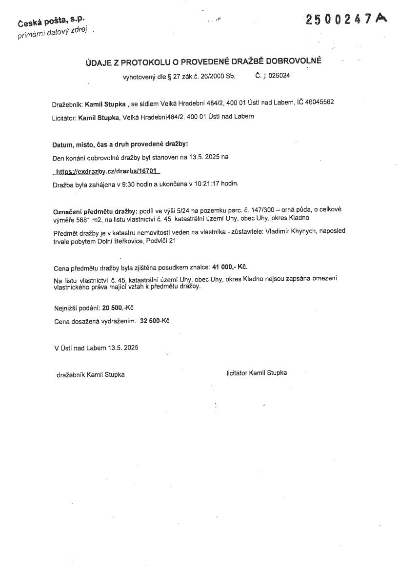 www.centralniadresa.cz – 07.12.2025 19:21 – announcement number 10969385DP01