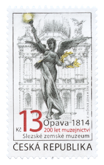 Na poštovní známce je vyobrazeno průčelí Historické výstavní budovy Slezského zemského muzea, ikonického objektu nejen Slezského zemského muzea ale i města. Budova někdejšího Muzea císaře Františka Josefa pro umění a řemesla byla postavena podle návrhu vídeňských architektů Johanna Scheiringera a Franze Kachlera v letech 1893–1895. V popředí je okřídlená socha Genia vídeňského sochaře Theodora Friedla, která je umístěna na střešní kopuli budovy. V současné době je zde umístěna zemská expozice Slezsko.