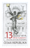 Na známce je vyobrazena historická budova Slezského zemského muzea v Opavě, v popředí s postavou Genia, kterou je korunována kopule stavby.