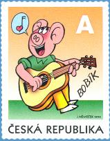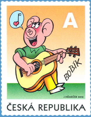 Na známce je prasátko jménem Bobík. Sedí v trávě, hraje na kytaru a zpívá zamilovanou písničku. Známka s Bobíkem uzavírá sérii Čtyřlístku na poštovních známkách.