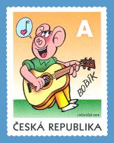 Na známce je prasátko jménem Bobík. Sedí v trávě, hraje na kytaru a zpívá zamilovanou písničku. Známka s Bobíkem uzavírá sérii Čtyřlístku na poštovních známkách.