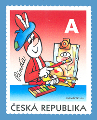 Na známce je vyobrazen zajíc jménem Pinďa. V rukách drží štětce a maluje obraz, před ním leží krabička s temperovými barvami. Pinďa je další postavičkou vydanou na poštovní známce.