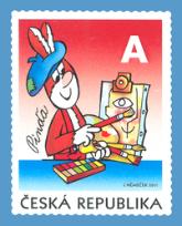 Samolepicí známkový sešitek s výplatními známkami s písmenem "A" z edice původního českého komiksu Čtyřlístek.