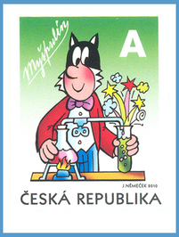 Samolepicí známkový sešitek s výplatními známkami s písmenem "A" z edice původního českého komiksu Čtyřlístek.