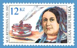 Na známce je vyobrazena Magdalena Rettigová s pomůckou, která symbolizuje její spisovatelské nadšení - kalamář.