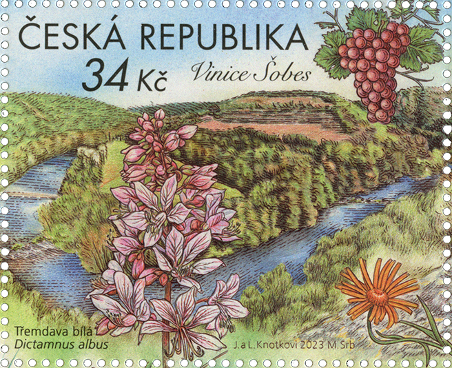 Horní část aršíku tvoří především pohled na proslulou vinici Šobes. Dále je zde zobrazena řada chráněných druhů rostlin a živočichů vyskytujících se pouze v této oblasti.