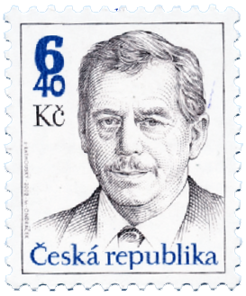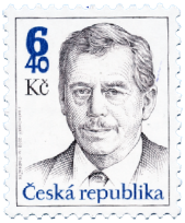 portrét prezidenta republiky Václava Havla - zpracováno podle známky s nominální hodnotou 5,40 Kč téhož námětu, vydané dne 1.3.2000 a známky nominální hodnoty 4,60 Kč, vydané dne 29. 1. 1998